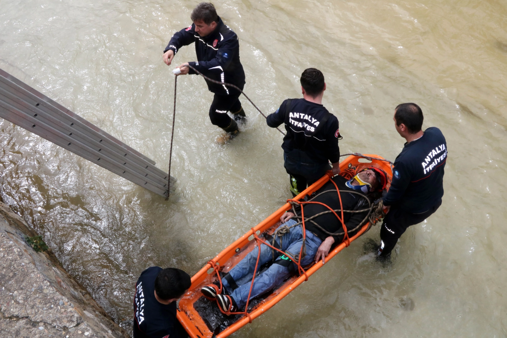 İhbar üzerine bölgeye polis, sağlık ve itfaiye ekipleri sevk edildi. Ekipler merdiven yardımıyla çay içinde bulunan yaralıya ulaştı. Sedye yardımıyla çıkarılan yaralı, ambulansla Alanya Eğitim ve Araştırma Hastanesi’ne kaldırıldı.