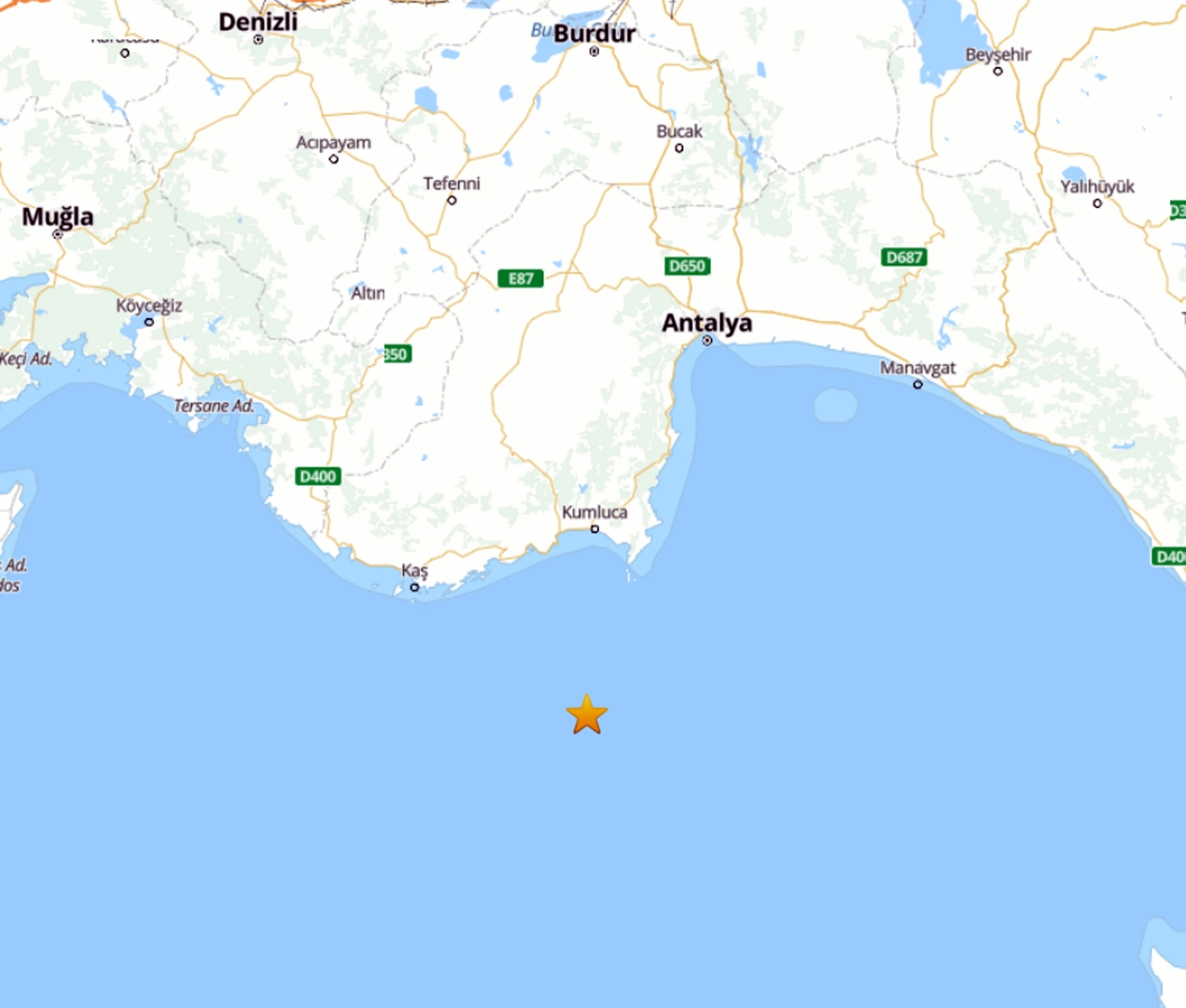 Antalya açıklarında 4.7 büyüklüğünde deprem