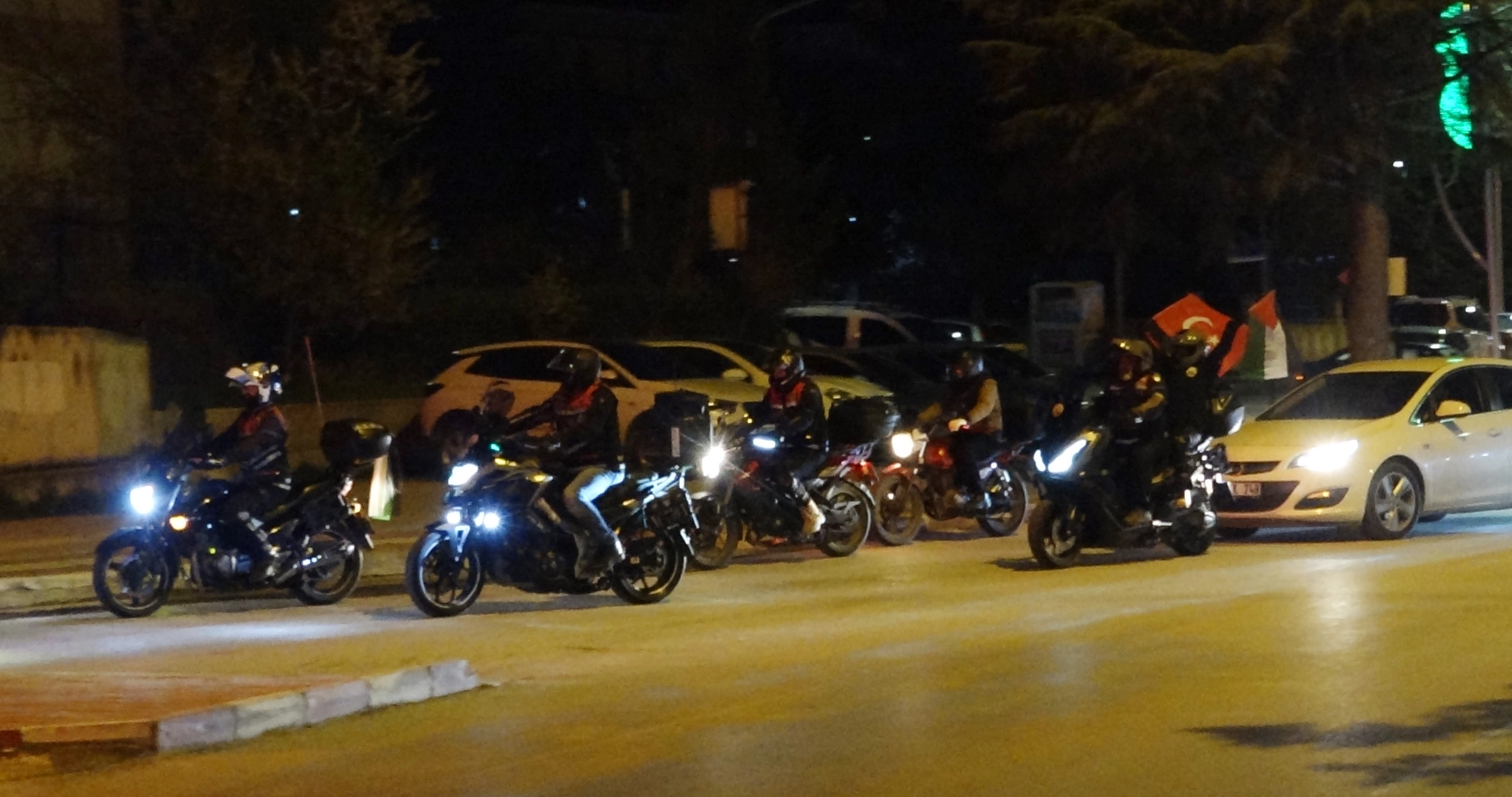 Atatürk Mahallesi'nde bir araya gelen gönüllülerin yatsı namazını Burkent Camisi'nde kıldıktan sonra oluşturdukları konvoy Emek Mahallesi, Bülent Ecevit Bulvarı, Gazi Caddesi, Armağan İlci Bulvarı ve İnönü Caddesi'ni takiben otogarda sona erdi. Burada açıklama yapan Filistin Destek Platformu Sözcüsü Hüseyin Büyükkeleş, "Gözü dönmüş, azgın bir grup Siyonist tarafından planlanmış ve ne yazık ki uygulamaya konulmuş, akıl almaz bir dönemi yaşamaktayız. Tüm değerlerin yok sayıldığı, çiğnendiği bir zaman diliminden geçmekteyiz. İnsanlık adeta azgın ve sapkın bir ideoloji tarafından ne yazık ki rehin alınmıştır. Biz esir değiliz. Bu esaret girişimine karşı kayıtsız kalacakta değiliz. Siyonist rejim şunu bilsin ki zalimlerin topuna canımızla başımızla, elimizle, aşımızla, varımızla, yoğumuzla direneceğiz. Bugün burada sadece bir kınama mesajı yayınlamak için değil insanlığın ortak mirasına, inanç özgürlüğüne ve uluslararası hukukun temel taşlarına vurulan baltayı deşifre etmek için toplandık. İslam dünyasının kalbi kanıyor, ilk kıblemize zincirler vuruluyor ve modern dünya, tarihin en büyük 'inanç ve yaşam hakkı' ihlaline, küresel bir şantaj sarmalının gölgesinde seyirci kalıyor. Siyonist İsrail rejimi tarafından, Gazze'de işlenen soykırımın kahredici acısı vicdanlarda canlı dururken, Lübnan'da ve İran'da ortaya konan yeni vahşetler insanlığı bir kez daha derinden sarsmaktadır. 165 İranlı öğrencinin, Siyonist rejim tarafından okul sıralarında katledilmesi ve bu katliamın küresel vicdanda yeteri kadar yer bulmaması bizleri derinden sarssa da bugün burada olduğu gibi dünyanın dört bir yanından yükselen itiraz sesleri bir nebze olsun umudumuzu yeşertmektedir" diye konuştu.