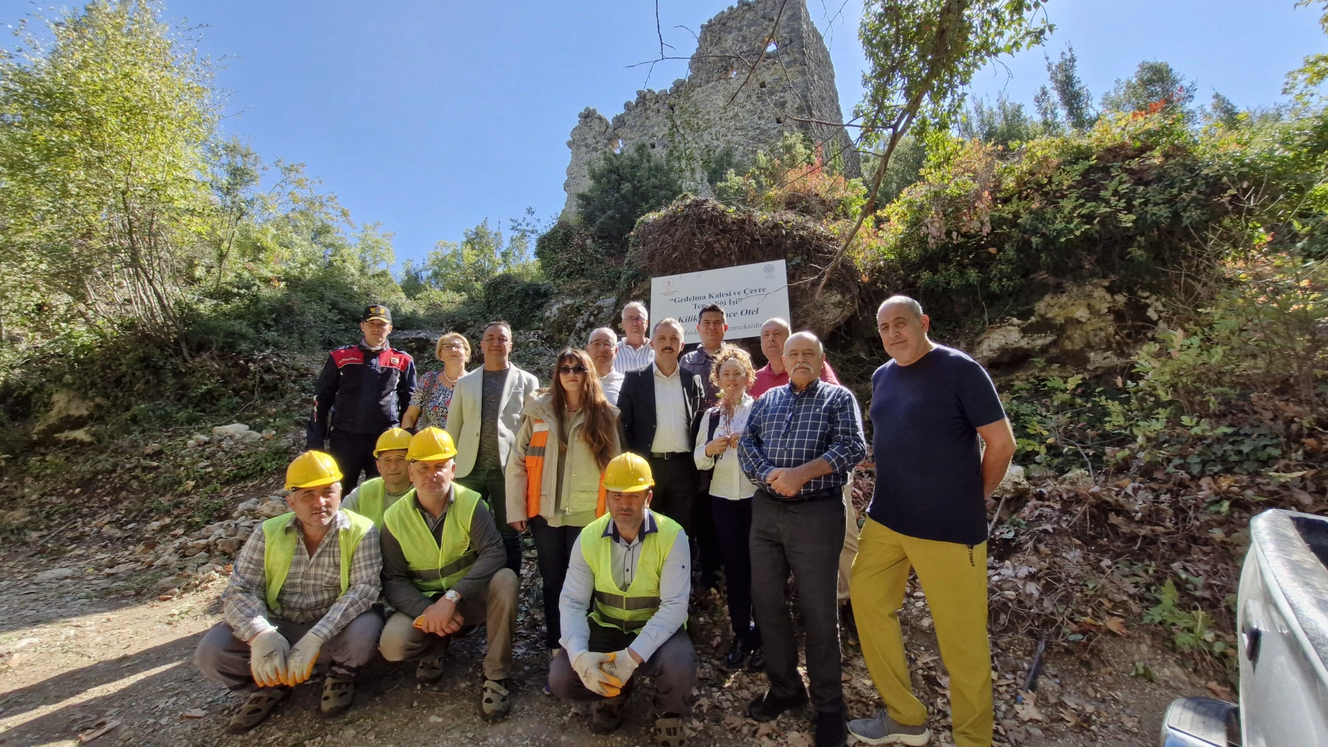 Levent YENİGÜN/KEMER, (DHA)- ANTALYA'nın Kemer ilçesindeki M.S. 9'uncu yüzyıla ait Gedelme Kalesi'nde 'Geleceğe Miras Projesi' kapsamında temizlik çalışması başlatıldı.Kemer'in 18 kilometre batısındaki Kuzdere Mahallesi sınırlarında, tarihi Likya yolunun Beycik- Yaylakuzdere- Gedelme- Göynük Yaylası güzergahında yürüyüş, cip safari etkinliklerine katılanların uğrak noktalarından Gedelme Kalesi'nde, temizlik çalışması başlatıldı. Gedelme Yaylası'ndaki 2 bin yıllık tarihi çınar ağacının yanındaki ve Jacobek tarafından İ.S. 9'uncu yüzyıla tarihlenmiş Bizans Ortaçağı Kalesi olan Gedelme Kalesi'ndeki Antalya Müze Müdürlüğü denetiminde bir otel sponsorluğundaki çalışmalar, Kültür ve Turizm Bakanlığı'nın 'Geleceğe Miras Projesi' kapsamında gerçekleştirilecek.Kemer Kaymakamı Ahmet Solmaz beraberindeki Antalya İl Kültür ve Turizm Müdür Yardımcısı İlknur Selçuk Köker, Müze Müdürü Mustafa Demirel, Kuzdere Muhtarı Serkan Günay, temizliğe destek veren otel sahibi Ayhan Gül, Gedelme Kalesi'ndeki çalışmalar hakkkında bilgi aldı. Kaymakam Solmaz, "Gedelme Kalesi'nde çevre temizliği çalışmalarımıza başladık. Kültür ve Turizm Bakanlığı'nın himayelerinde, sponsor otelimizle bölgemizin en değerli turistik mekanlarından Roma dönemine ait ve Bizans döneminde de ordugah olarak kullanıldığı tarihi bilgisine sahip olduğumuz mekanın temizliği proje tertiplendi. Bu sayede bölgemize gelen turistlerimizin sadece deniz ve güneşin dışında tarihi mekanların tanıtımına önemli katkı sağlayacağı kanaatindeyiz" diye konuştu. (DHA)FOTIĞRAFLI