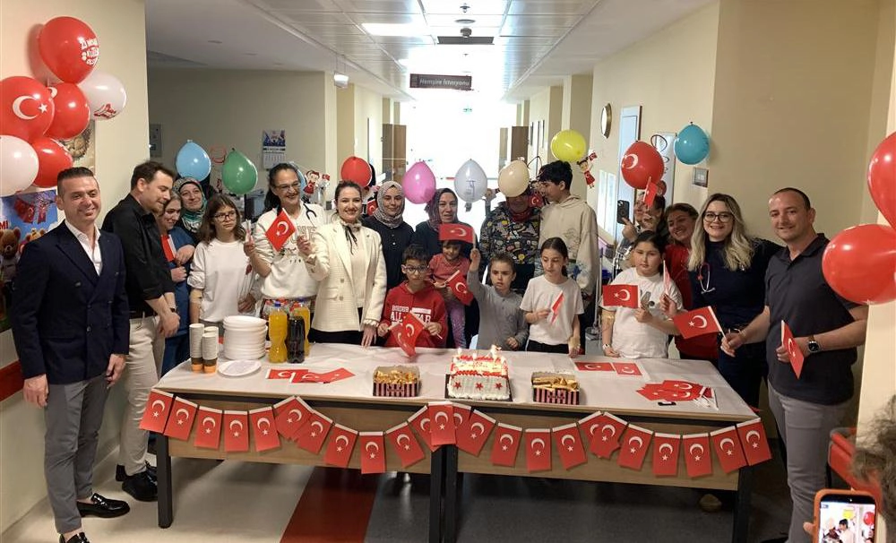 23 Nisan Ulusal Egemenlik ve Çocuk Bayramı kapsamında, bayram coşkusuna katılamayan ve tedavileri Burdur Devlet Hastanesi'nde devam eden çocukları için özel etkinlik düzenlendi. Bayraklar ve balonlarla süslenen servis alanında gerçekleştirilen programda, tedavi gören çocuklar 23 Nisan temalı pasta keserek müzik eşliğinde keyifli anlar yaşadı. Yapılan ikramlarla bayramın tadını çıkaran çocuklar, günün anısına hatıra fotoğrafları çektirdi. (DHA)