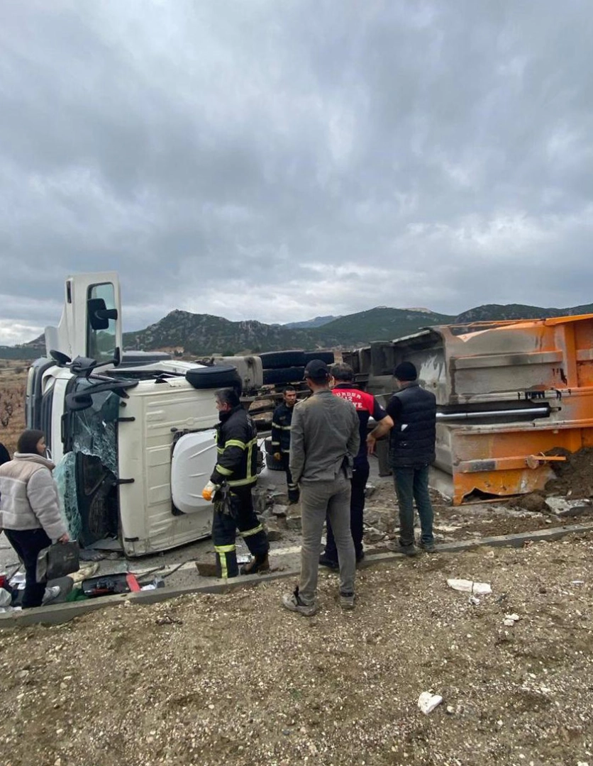 Mesut MADAN/BURDUR,(DHA)- BURDUR'da Mustafa Uz, kullandığı kamyonun hakimiyetini kaybederek devrilmesi sonucu yaralandı.