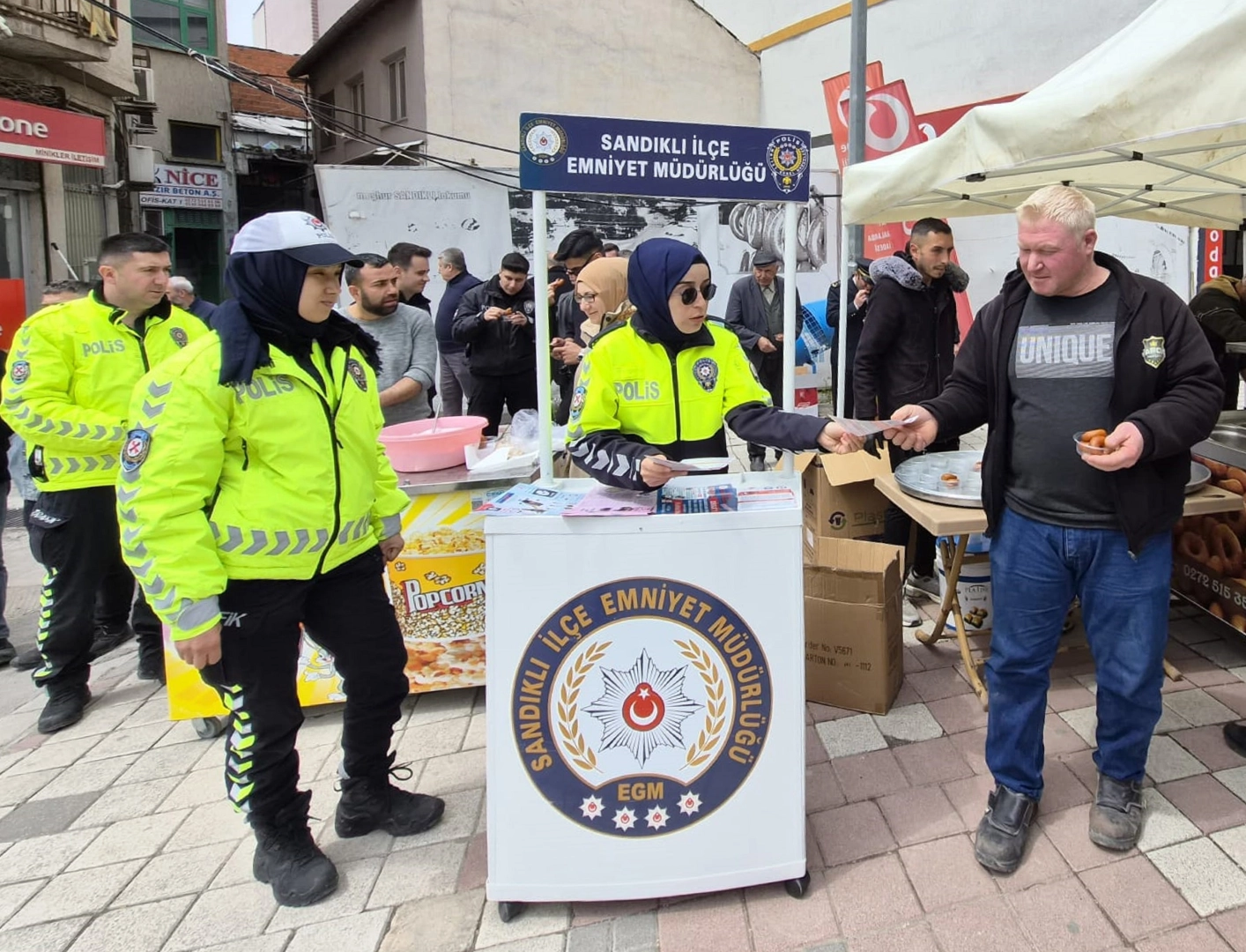 Sandıklı İlçe Emniyet Müdürlüğü, Türk Polis Teşkilatı'nın kuruluş yıl dönümü ve Polis Haftası etkinlikleri dolayısıyla şehit meslektaşları adına lokma dağıttı. Hamamönü Camisi önünde kurulan stantlarda, şehitlerin ruhuna ithafen vatandaşlara lokma ikramında bulunuldu. Lokma dağıtımı sırasında emniyet personeli, vatandaşlarla bir araya gelerek tebriklerini kabul etti. (DHA)
