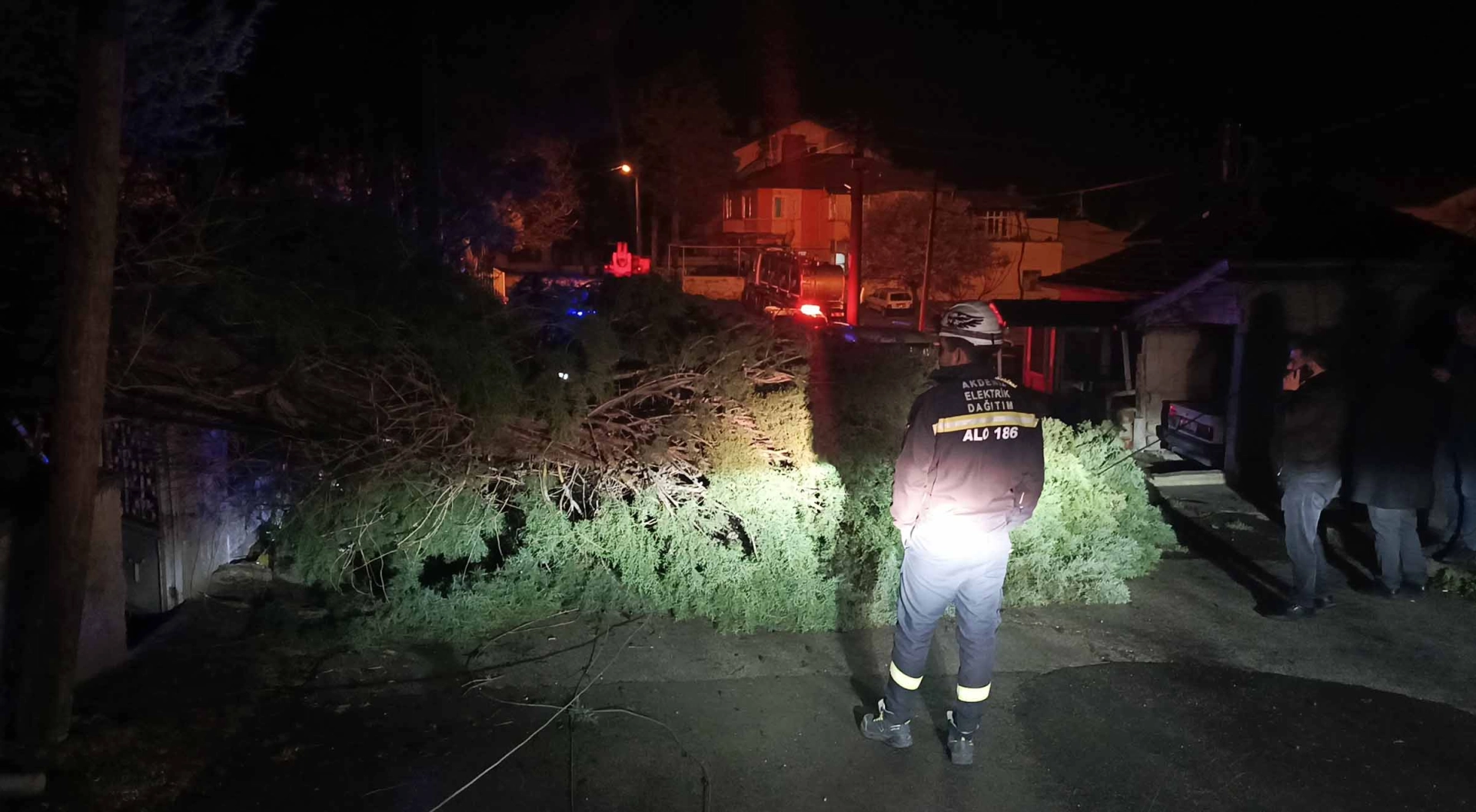 Olay, dün saat 22.00 sıralarında merkez Karasenir Mahallesi Emre Sokak’ta meydana geldi. Sultan Topdemir’e ait evin bahçesinde bulunan çam ağacı, şiddetli rüzgar nedeniyle yola devrildi.