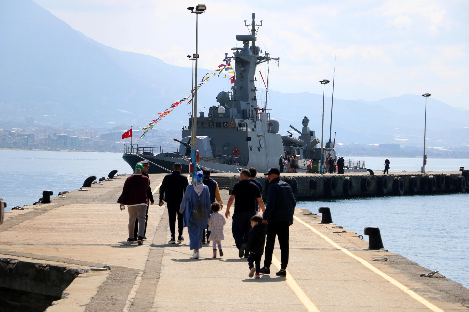 23 Nisan Ulusal Egemenlik ve Çocuk Bayramı kapsamında Türk Deniz Kuvvetleri’ne ait TCG BORA Hücumbotu, Alanya Alidaş Liman İskelesi'nde ziyarete açıldı. Kılıç sınıfı hücumbotlardan biri olan ve P-338 borda numarasını taşıyan TCG BORA, 10.00- 12.00 ile 14.00- 17.00 saatleri arasında vatandaşları ağırladı. Yaklaşık 62 metre boyunda ve 9 metre enindeki savaş gemisine özellikle çocuklar ve aileler yoğun ilgi gösterdi. Alidaş Liman İskelesi'ne gelenler, geminin çeşitli bölümlerini gezerek hücumbotu yakından görme imkanı buldu. Aileler hatıra fotoğrafı çektirirken, görevli personel de gemi hakkında ziyaretçilere bilgi verdi. Diğer yandan Türk bayraklarıyla renklenen liman bölgesinde 23 Nisan'ın ruhuna uygun görüntüler oluştu. (DHA)