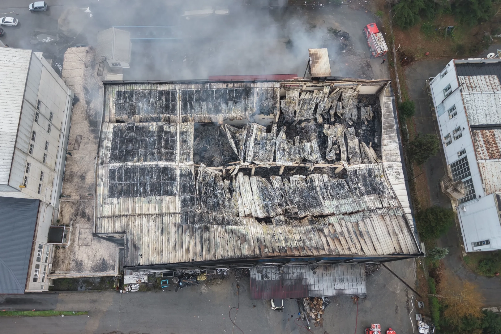 Öte yandan, çıkan yangının verdiği hasar, gün aydınlanınca ortaya çıktı. Dronla görüntülenen ve çatısı çöken fabrikanın büyük bölümünün tamamen kullanılmaz hale geldiği görüldü.