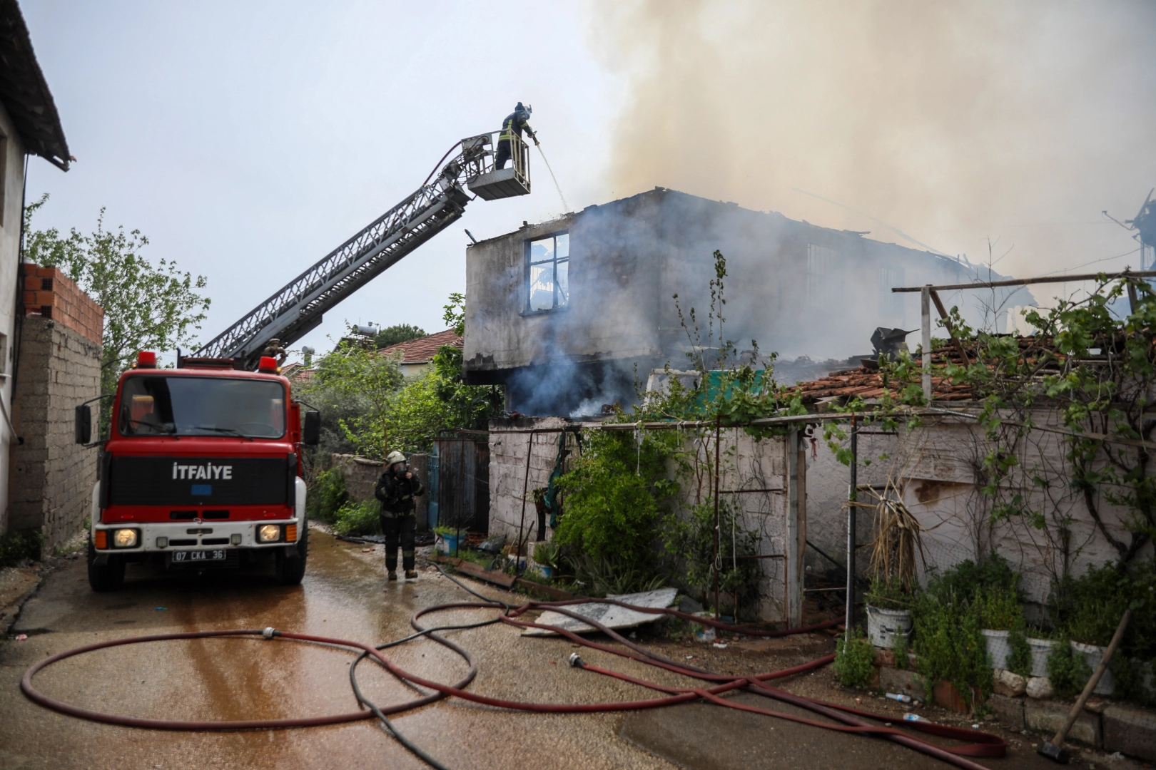 Semih ERSÖZLER/ANTALYA, (DHA)-ANTALYA'da bir evde çıkan yangında, o sırada yalnız olan Lema (10) ve Tena Abit (7) kardeşler, dış kapıyı kırıp içeri giren komşular tarafından kurtarıldı. Yangında ayrıca 2 ev küle döndü.